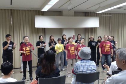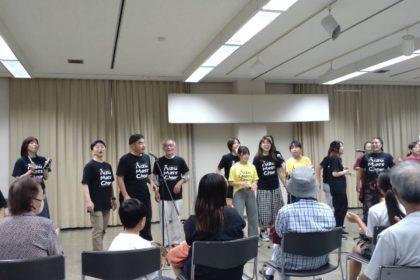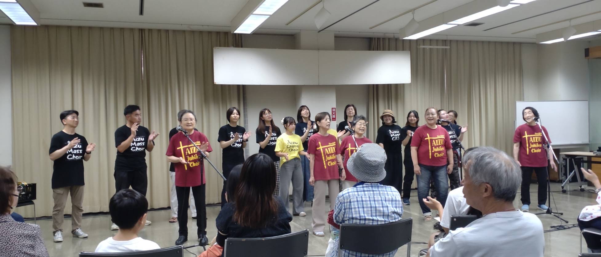 平和まつり2025ライヴ! ライブレビュー 2025.08.12 2025平和まつりの中日になる8月9日、三クワイアによるゴスペルライヴSing for Peace!がありました。 ♪みんな集まれ、平和まつりへ〜から6曲をお客さまに楽しんでいただきました。ライヴ終了後、楽しかった、元気が出たとの嬉しいお声もいただき、ゴスペル(良い知らせ)を歌う意味を改めて感じているところです。これからも歌を通して、聞いてくださるみなさんに元気を、そして私たちも平和を作りだすためにできることを、一緒に行っていく仲間でありたいと思います。 会津マスクワイアではメンバーを随時募集しております。お問い合わせはご気軽に!